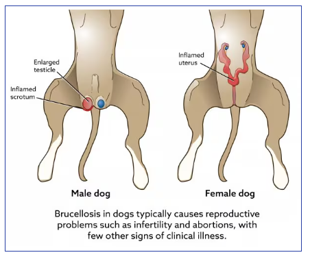 Canine brucellosis is a bacterial disease caused by Brucella canis, a Gram-negative intracellular pathogen belonging to the genus Brucella. The organism primarily infects the reproductive organs of dogs and spreads through: